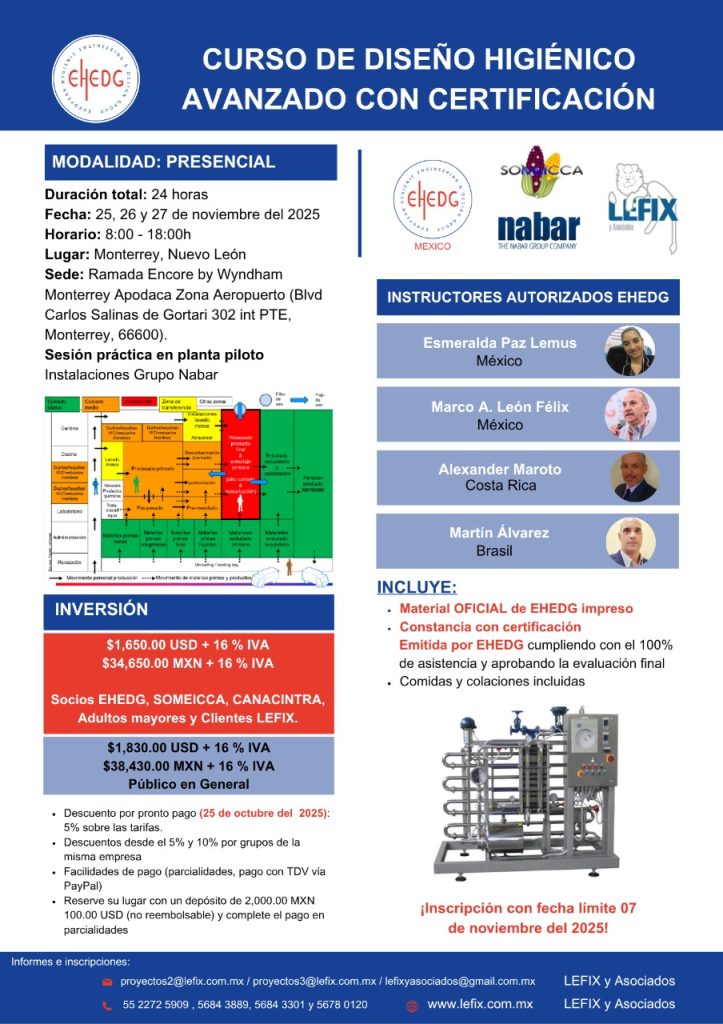 Somos una empresa 100% Mexicana con más de 25 años de experiencia en el área de consultoría, capacitación y venta de Equipo para la Industria de Alimentos.